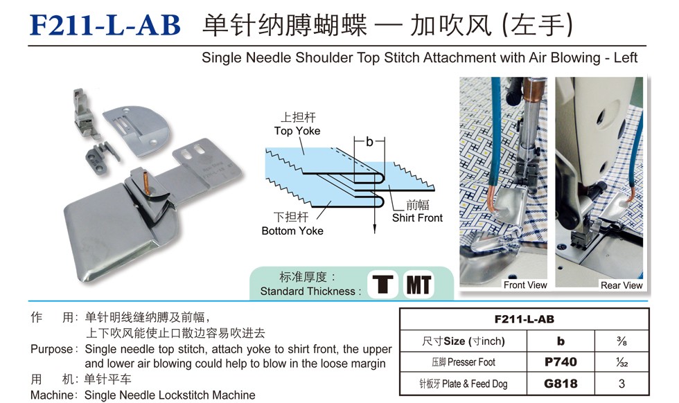 作 用:單針明線縫納膊及前幅,上下吹風能使止口散邊容易吹進去