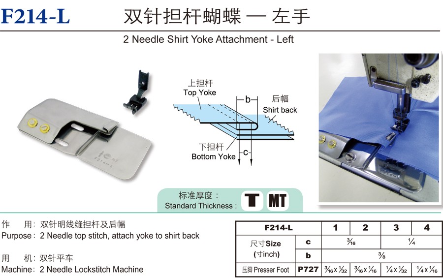 F214-L 雙針擔(dān)桿蝴蝶 — 左手