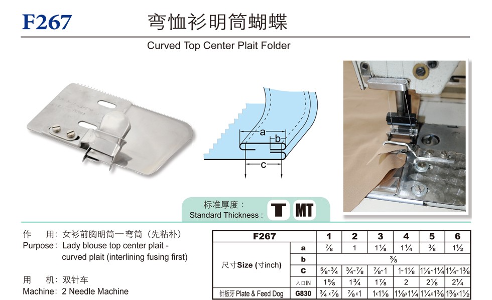 作 用:女衫前胸明筒―彎筒(先粘樸)