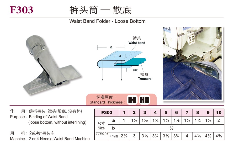 作 用:縫折褲頭, 裙頭(散底, 沒有樸)