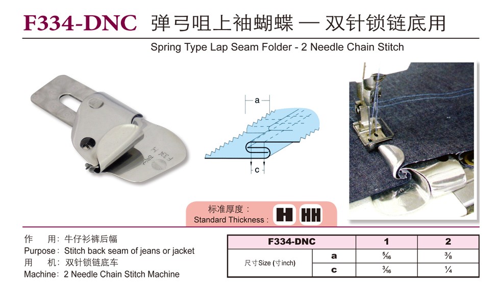 F334-DNC 彈弓咀上袖蝴蝶 — 雙針鎖鏈底用