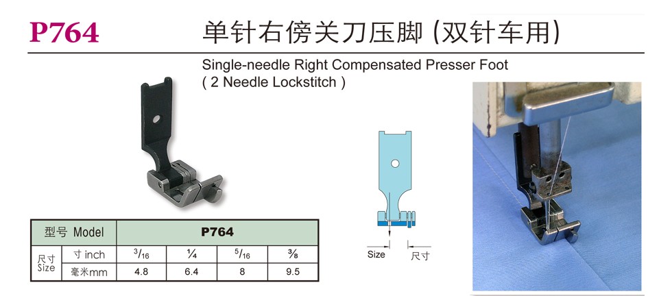 P764 單針右傍關(guān)刀壓腳 (雙針車用)