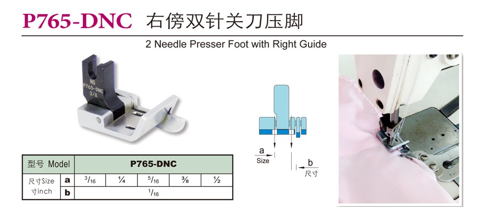 P765-DNC 右傍雙針關(guān)刀壓腳