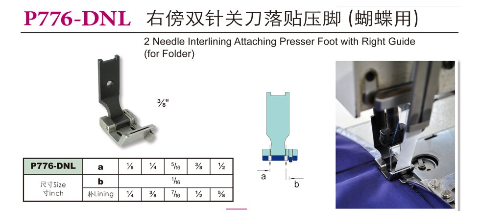 P776-DNL 右傍雙針關(guān)刀落貼壓腳 (蝴蝶用)