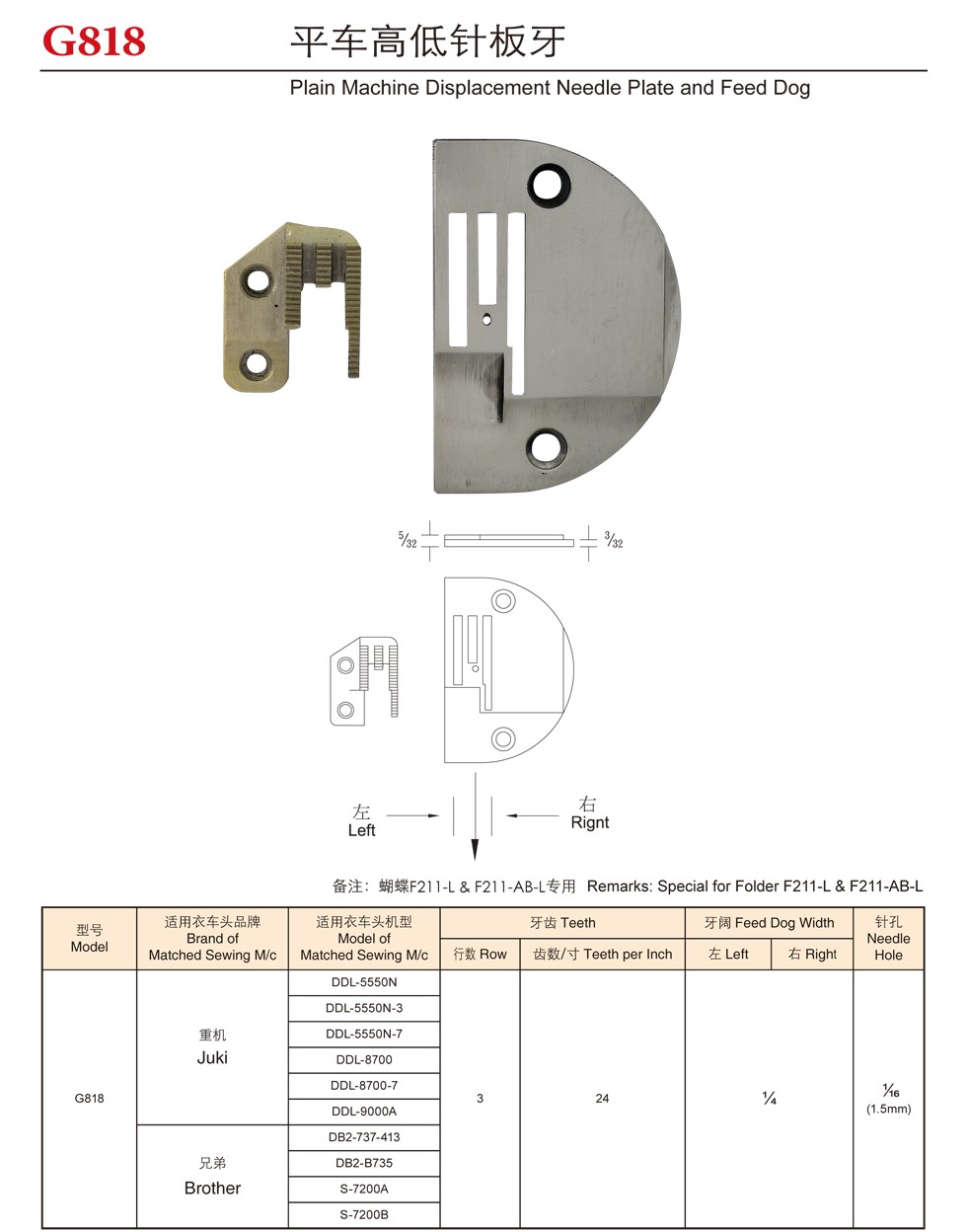 G818 平車高低針板牙