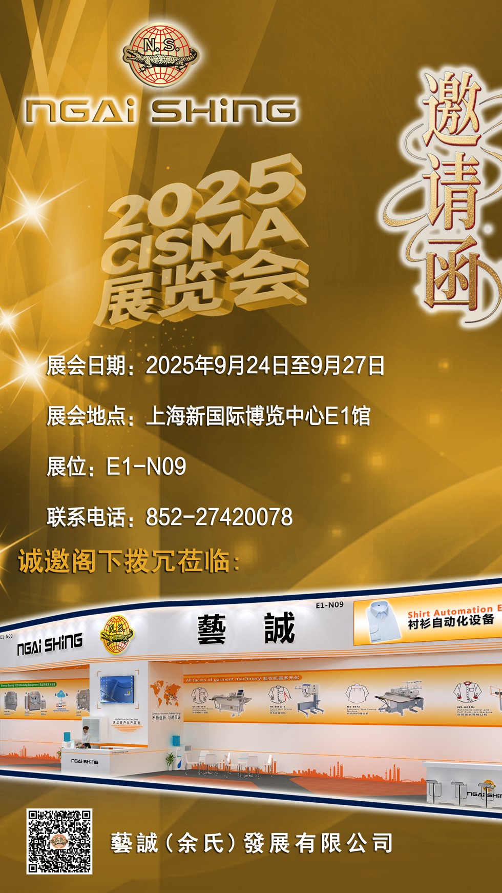 2025年9月24日至9月27日,備受矚目的CISMA展會將在上海新國際展覽中心盛大舉辦。作為深耕服裝行業(yè)70余年的技術(shù)創(chuàng)新標桿,藝誠將攜全新的襯衫自動化車縫設(shè)備以及其他眾多優(yōu)質(zhì)展品,正式亮相E1-N09展位。