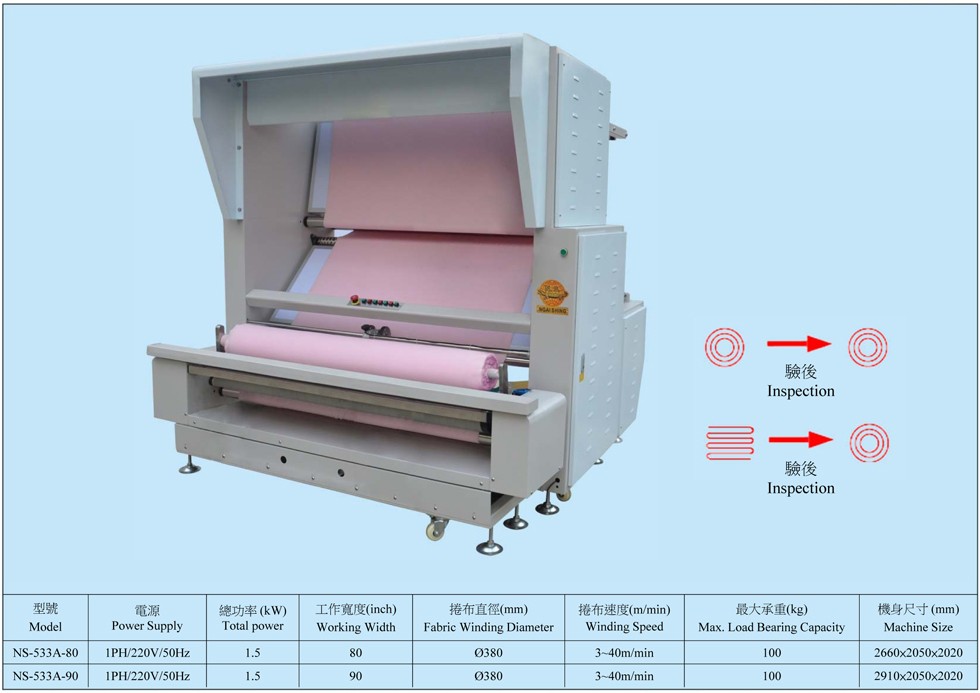 1. 適用針織圓筒布、針織、彈性布、梭織布的卷布、驗布