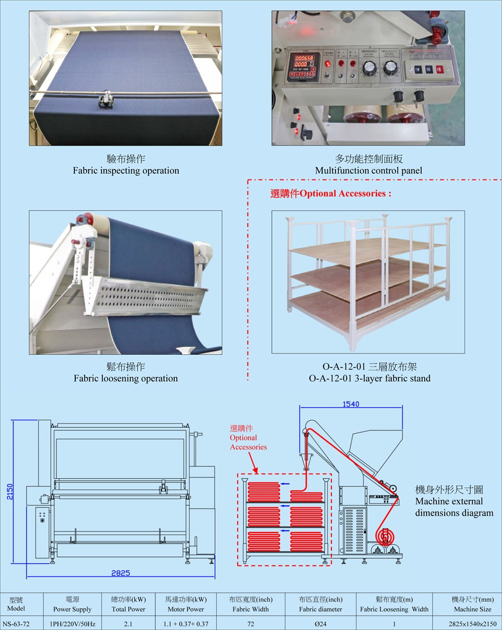 1.本機主要適用于松、驗牛仔布。2.將卷狀布松成匹狀布,能將拉長的布松回原來的長度,提高裁剪布匹的準確性