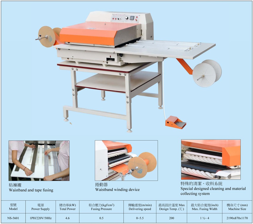5. 配有粘合褲頭專用裝置,可實現(xiàn)自動送料和收料