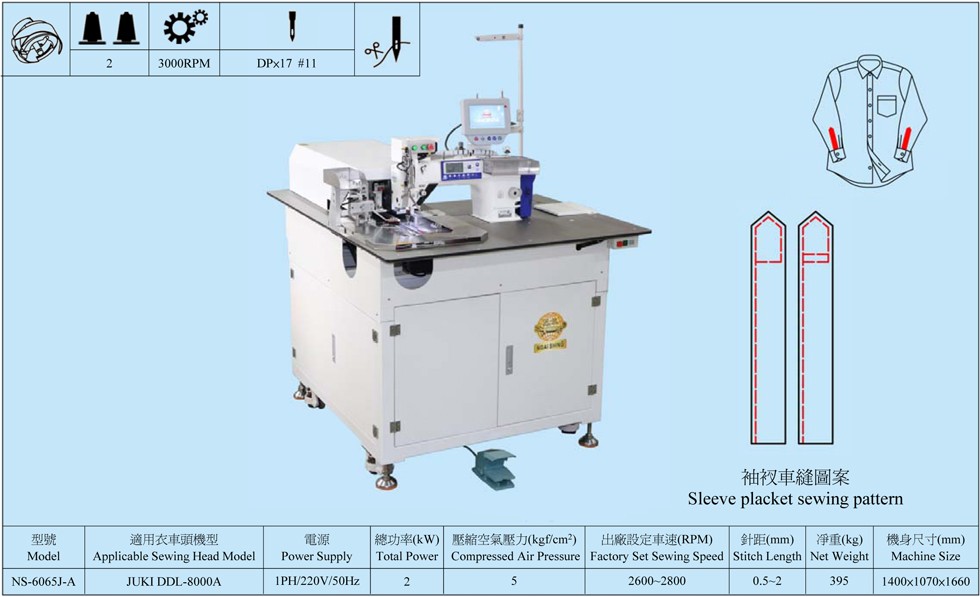 6. 一臺(tái)機(jī)可實(shí)現(xiàn)左右袖衩切換縫制,無需另制模具