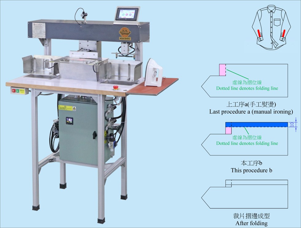 2.操作簡單,只需把袖大側(cè)裁片放置指定位置,設備自動完成折、燙、收料動作