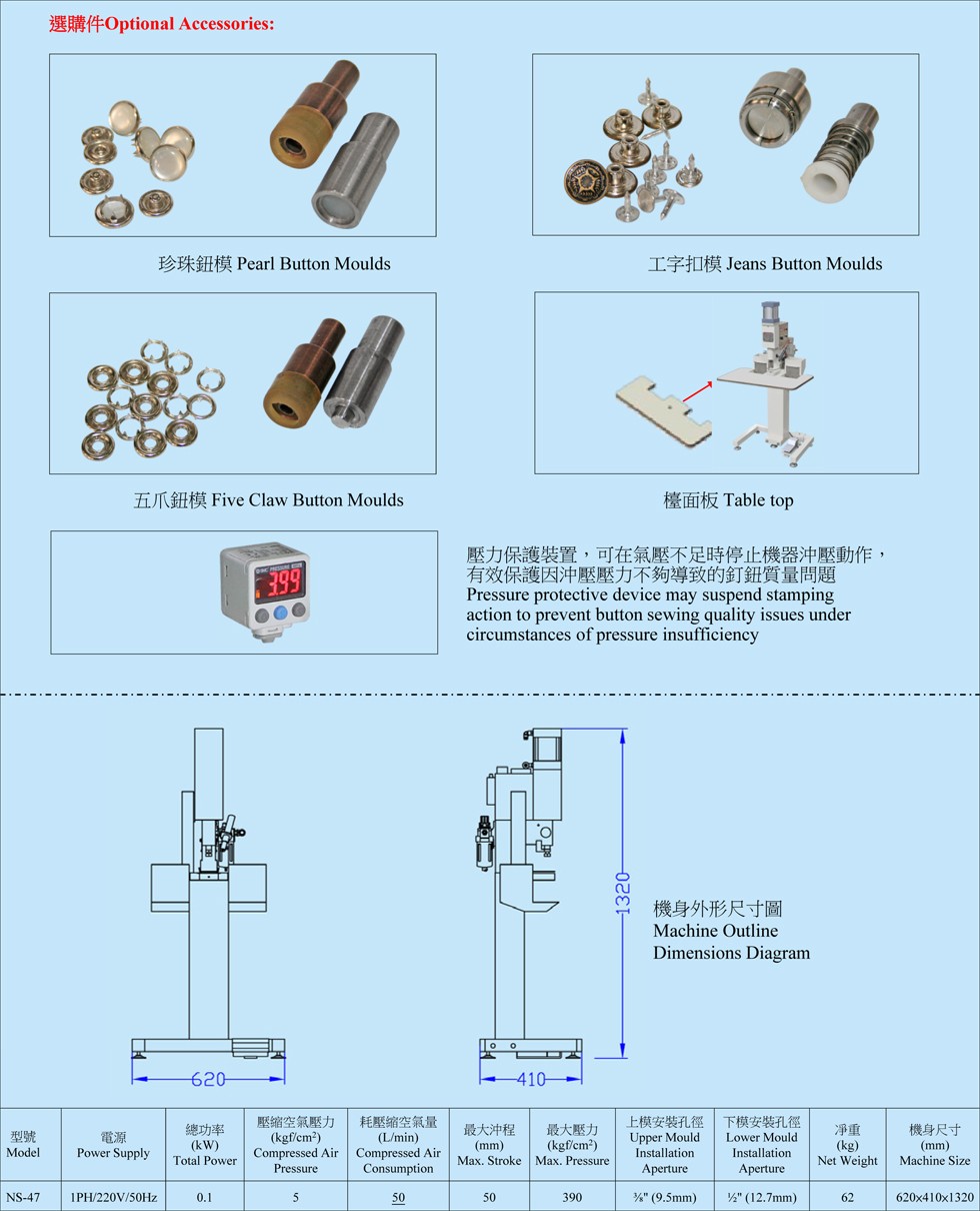 1.適用于沖壓衣物上或真皮、塑料布料上的鐵鈕、膠鈕、珍珠鈕、工字扣等鈕扣
