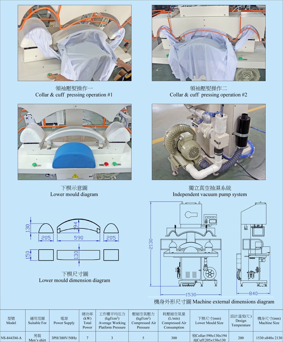 1.適用于襯衫領(lǐng)、袖壓熨