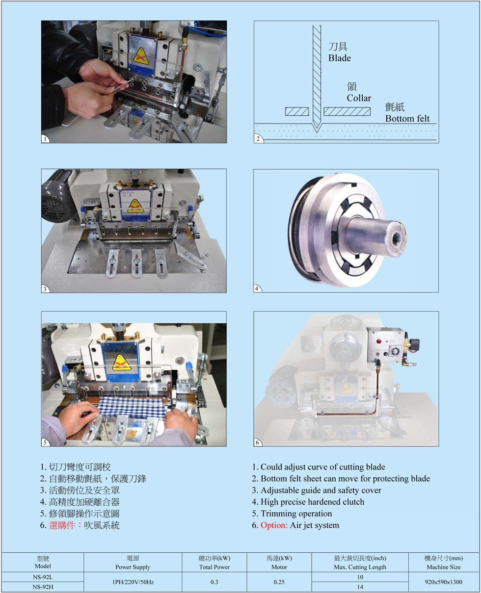 6. 可安裝選購件:吹風系統(tǒng),方便收集廢布屑