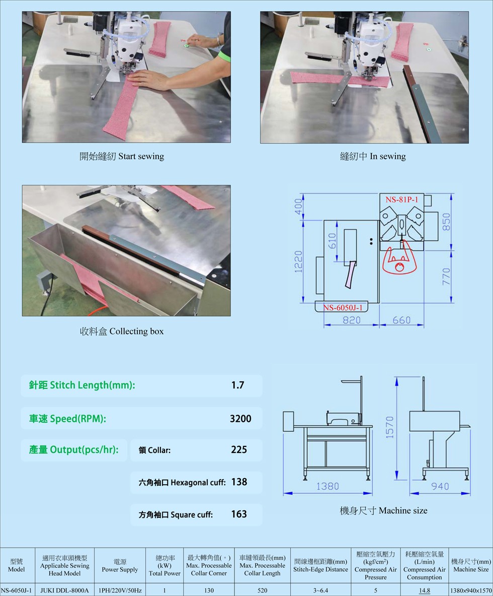 4. 操作簡單,適合生手工人操作,一人可操作多臺機器(上工序必須處理好領或袖之翻轉(zhuǎn)、壓熨)