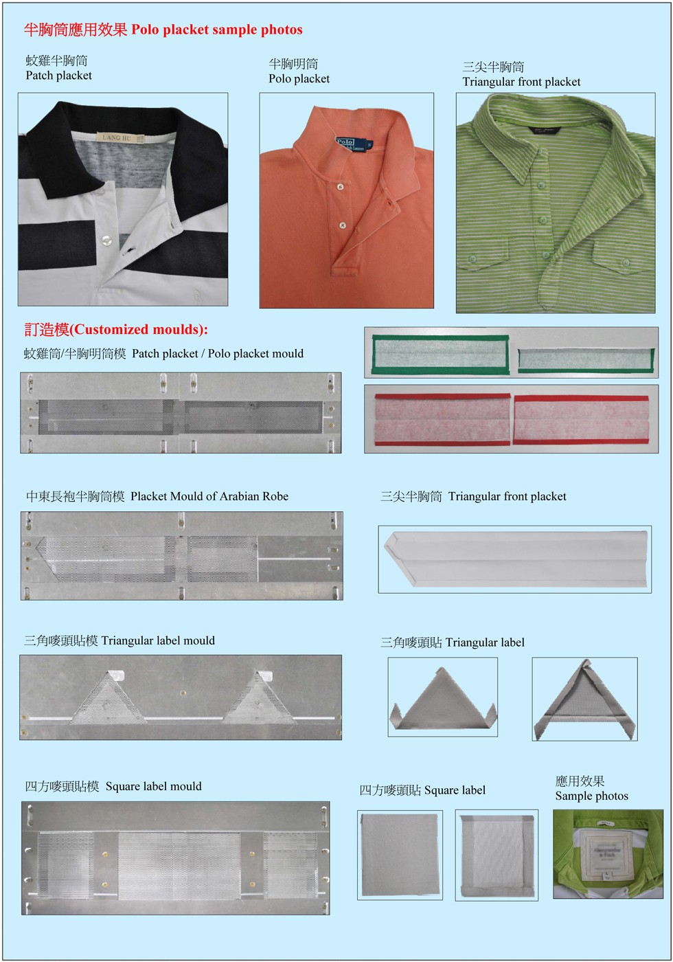 折熨蚊雞筒、半胸明筒、三尖半胸筒、三角嘜頭貼、四方嘜頭貼等