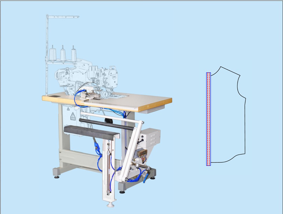 1. 配合雙針平機(jī),車縫男女裝帶樸前幅鈕筒
