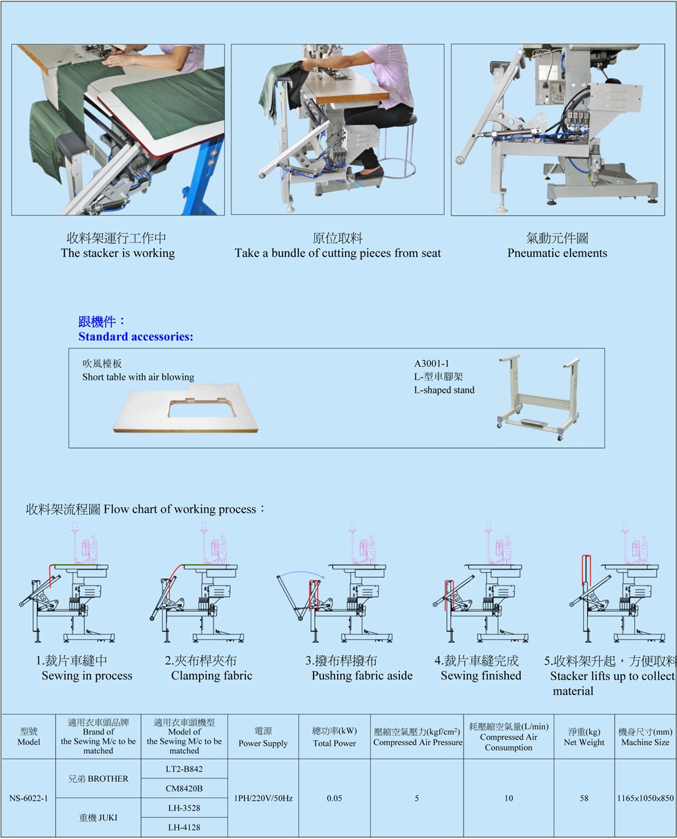 4. 迭布架能提升,使操作者能在原位取裁片