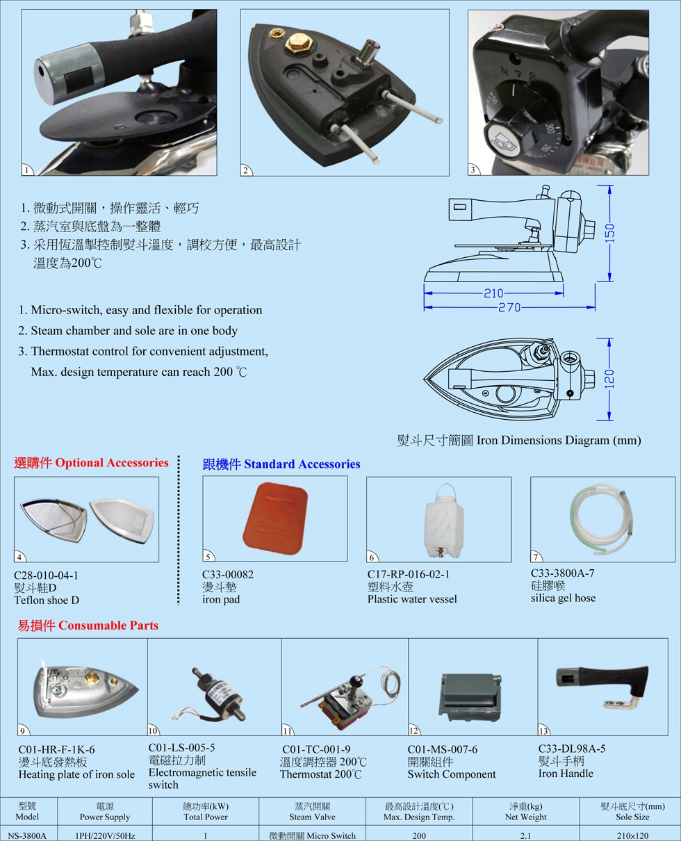 3. 特造高硬度合金底板,傳熱性能優(yōu)越;電鍍處理底部,可在衣物上滑動(dòng)自如
