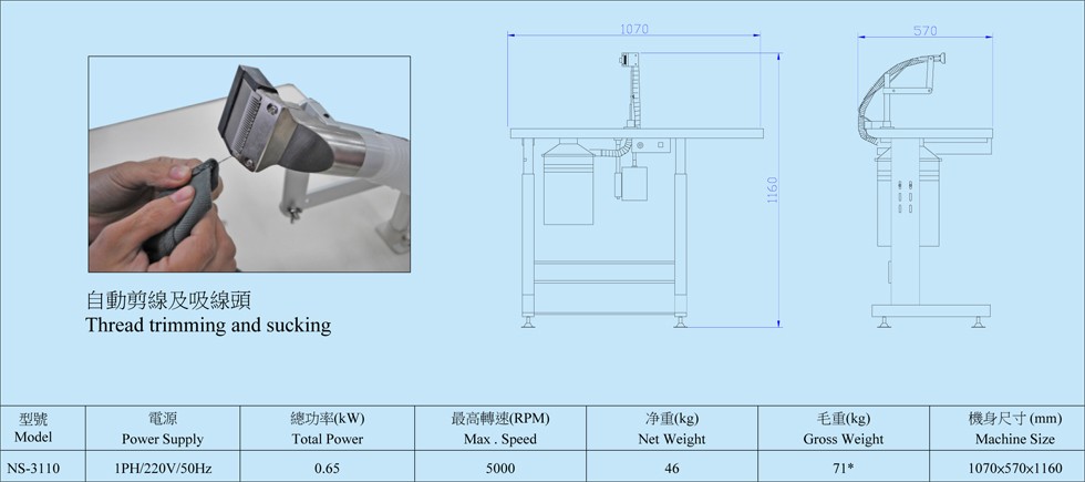 2. 此機是替代人工剪線頭的自動化設備,可將吸線、剪線、清理線頭一次完成,提高剪線工藝效率