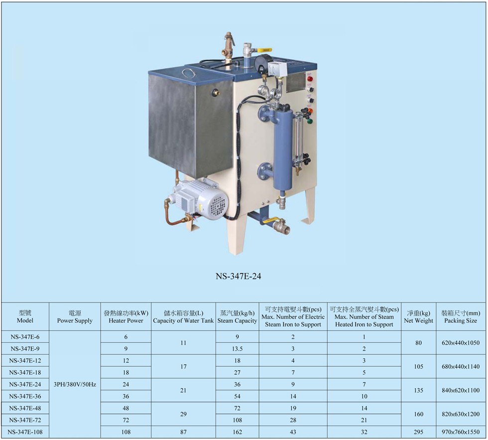 5. 根據(jù)不同的熨斗規(guī)格或蒸汽使用設(shè)備選擇相應(yīng)的蒸汽鍋爐,以滿足熨燙、加熱或其它需求