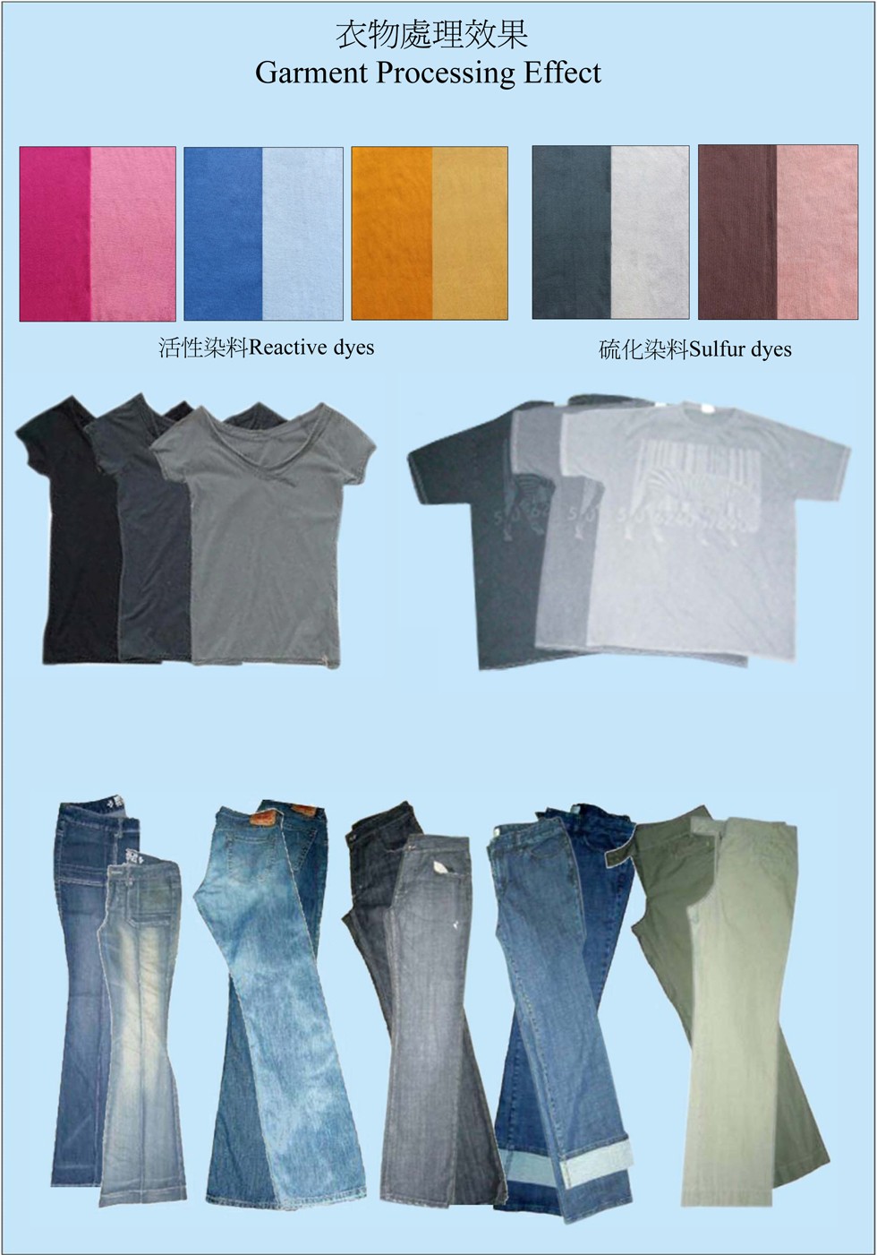 7. 去除傳統(tǒng)褪色加工的有毒處理過程,并能保留衣物的強(qiáng)度