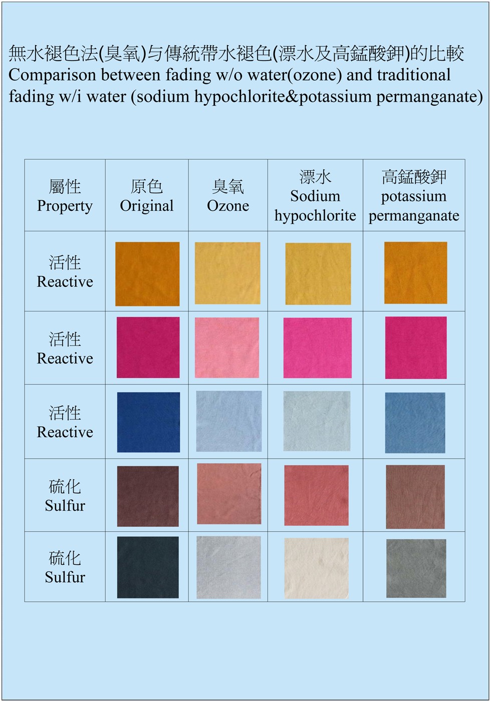 靛藍(lán)牛仔的調(diào)色和褪色處理,利用臭氧的強(qiáng)氧化特性,也可對染色的針織及梭織衣物進(jìn)行處理