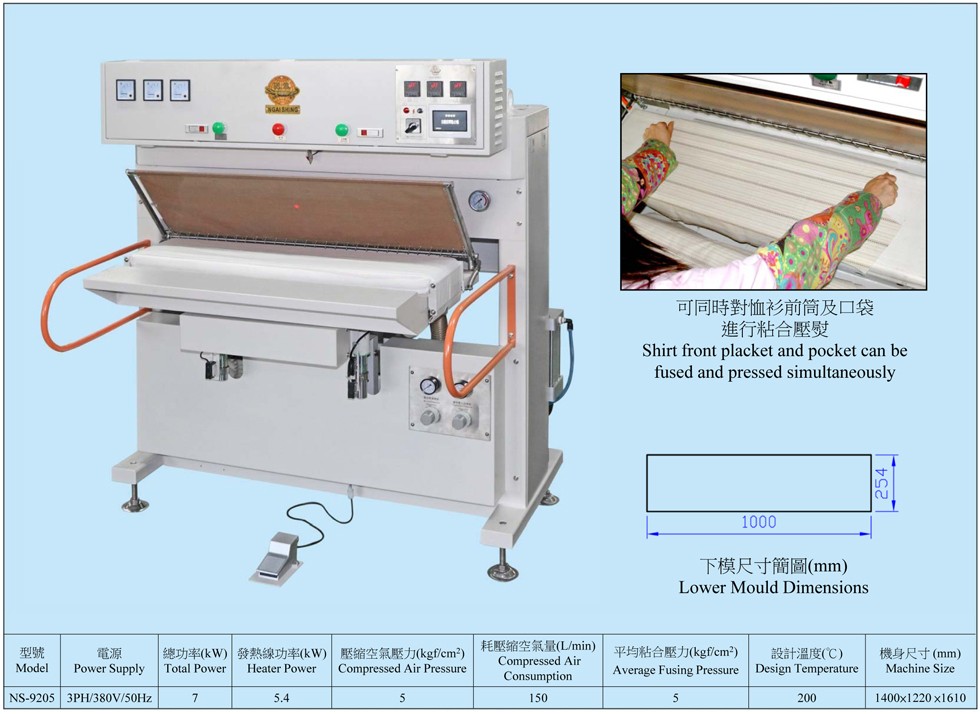 1. 適用于恤衫筒及口袋粘合壓熨