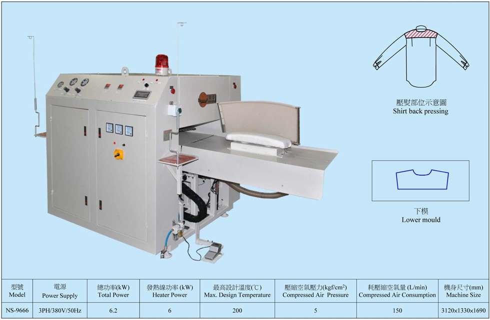 6. 可更換式下模,模形大小與衣物尺碼完全對(duì)應(yīng),達(dá)到更完美壓熨效果