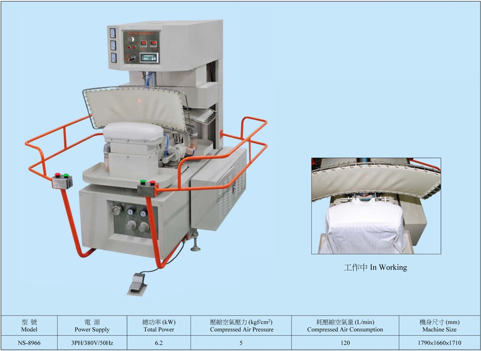 8. 下模可抽濕(需另購真空泵),有助衣物定位、冷卻,定型效果佳