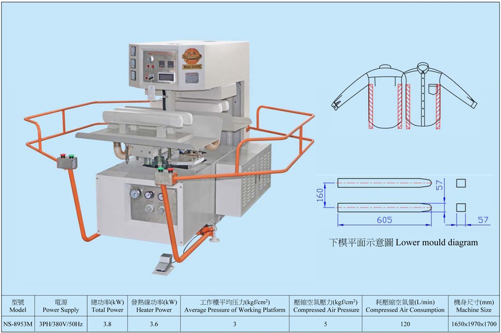 3. 采用垂直加壓方式,壓力效率更高,壓熨更平整