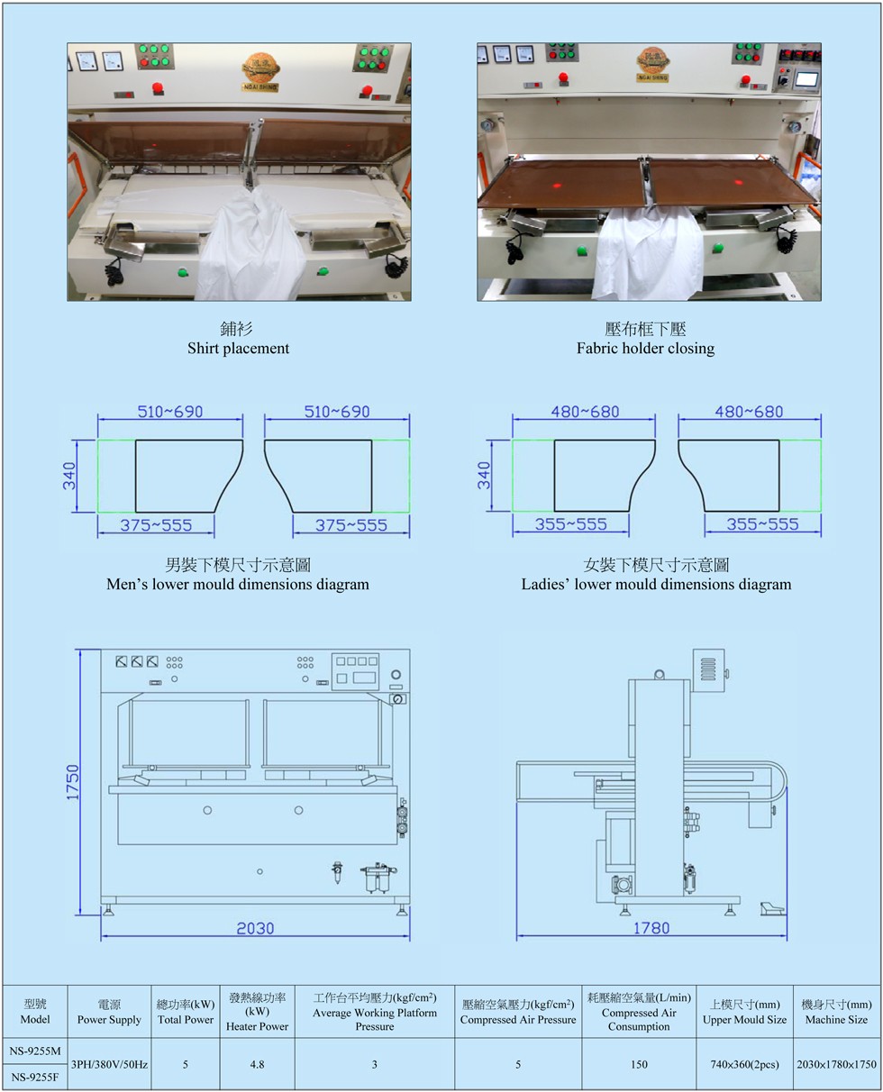 2. NS-9255M適用于男裝襯衫,NS-9255F適用女裝襯衫