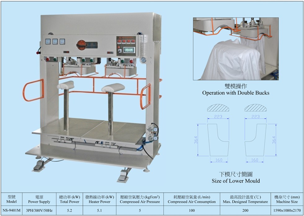 2. 雙擔(dān)桿式垂直加壓設(shè)計(jì),分次壓熨擔(dān)桿左右,壓力效率高,壓熨效果好