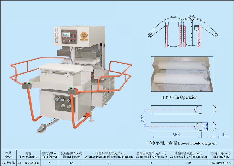 1. 適用于襯衫側(cè)縫防皺壓熨