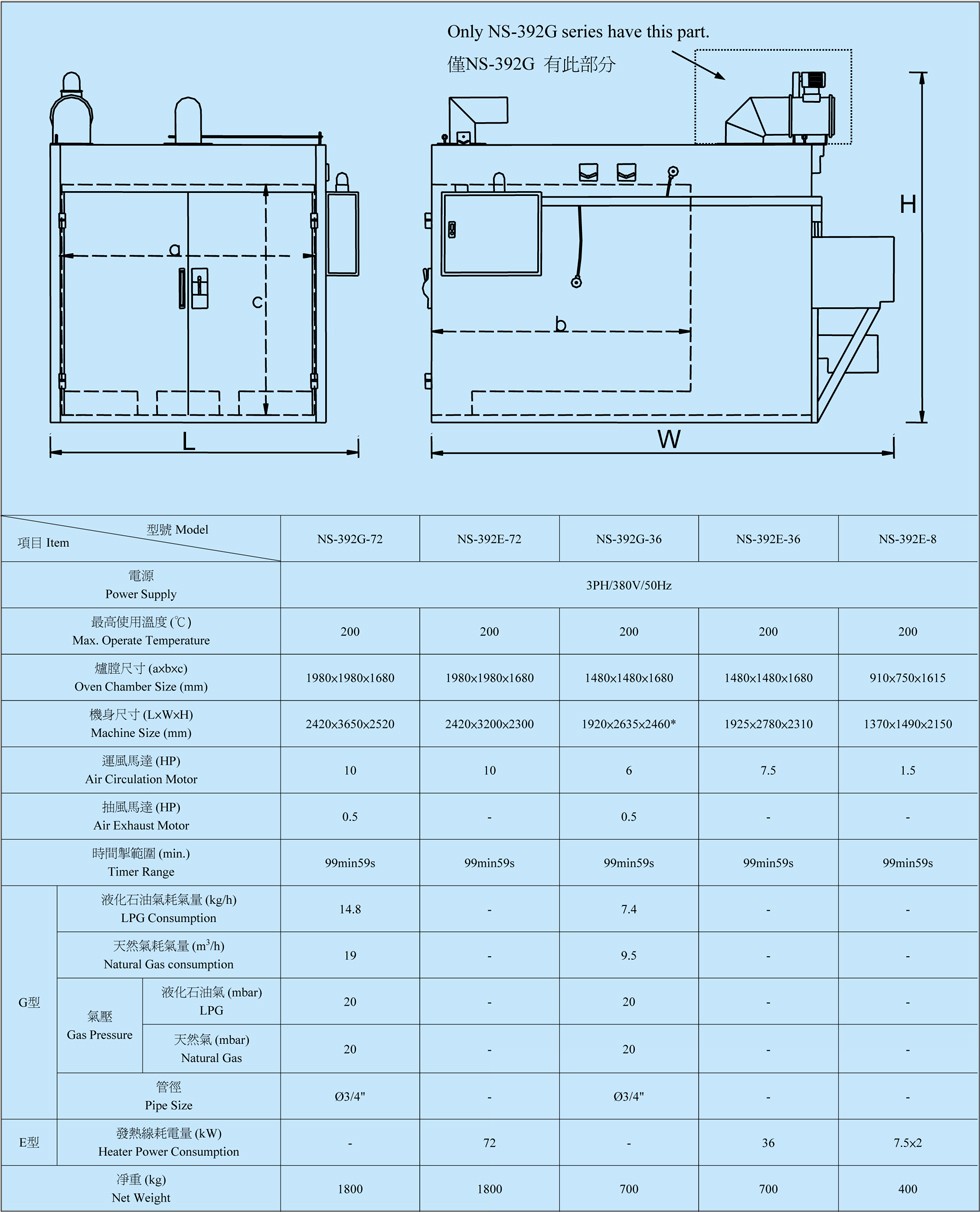 7. NS-392G系列默認(rèn)燃料為液化石油,若使用天然氣,需特別注明