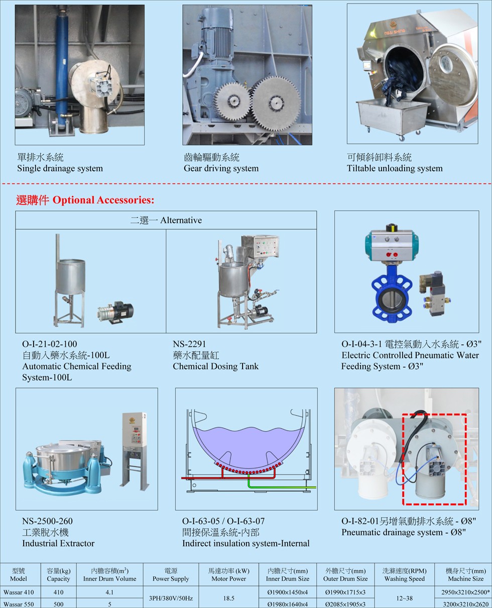 1.大直徑內(nèi)膽設(shè)計,特別適用于對牛仔,休閑服等厚料衣物進(jìn)行石洗和酵洗