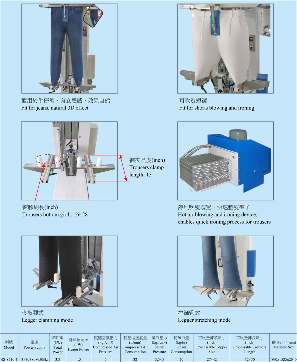 1. 適用于吹熨牛仔褲、燈芯絨褲、斜紋褲、休閑褲