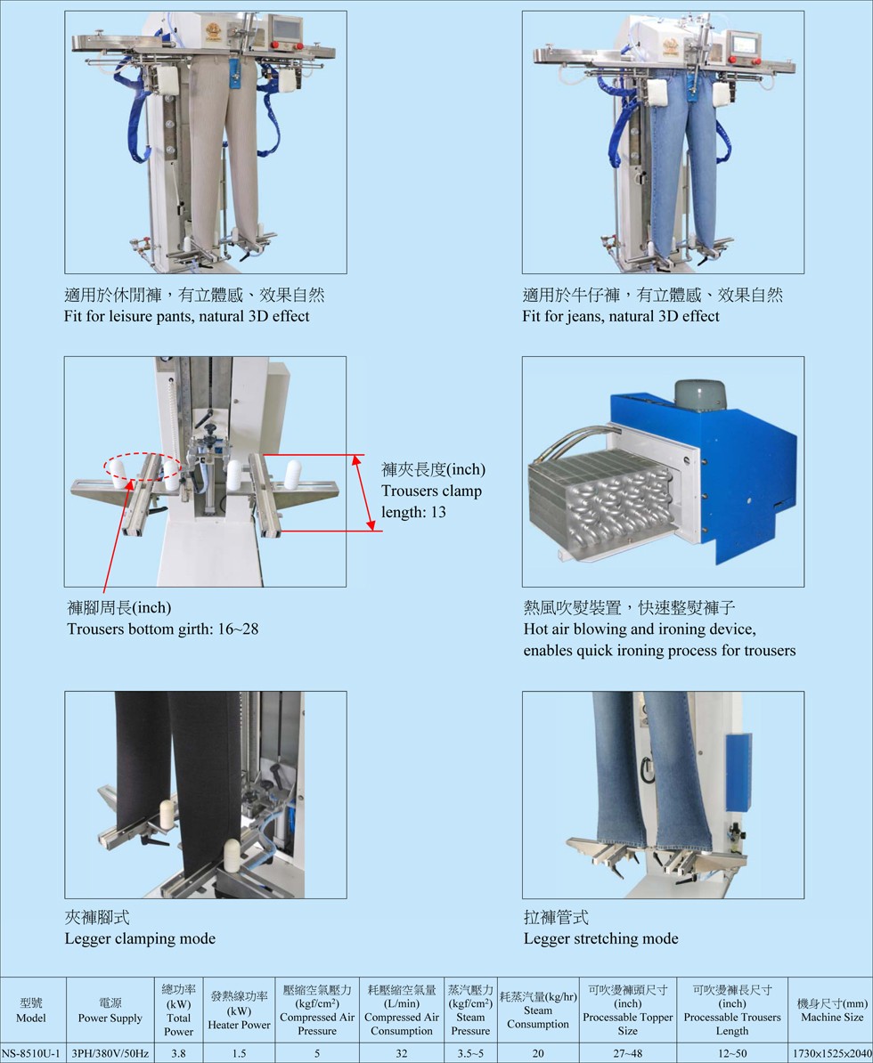 1.適用于吹熨牛仔褲、燈芯絨褲、斜紋褲、休閑褲