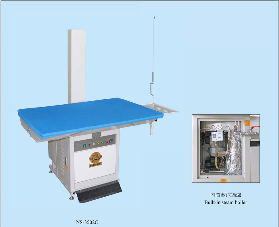 2. 內(nèi)置小型蒸汽鍋爐,功率大,適合電蒸汽熨斗和全蒸汽熨斗,無需蒸汽工程安裝,一體化環(huán)保節(jié)能設計,使用方便,占地小