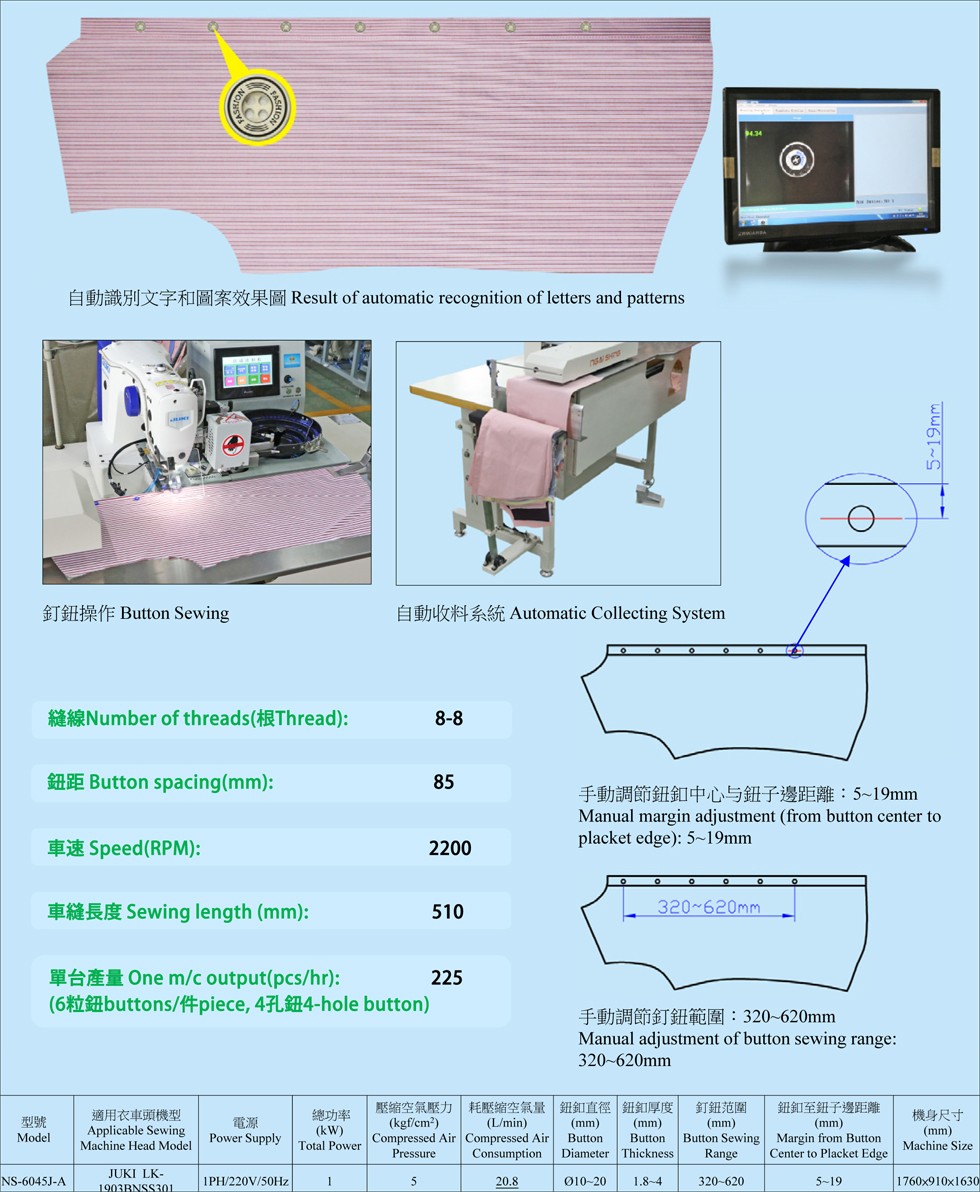 5. 采用高精度送鈕裝置,配合自動裁片送料系統(tǒng),大大提高工作效率