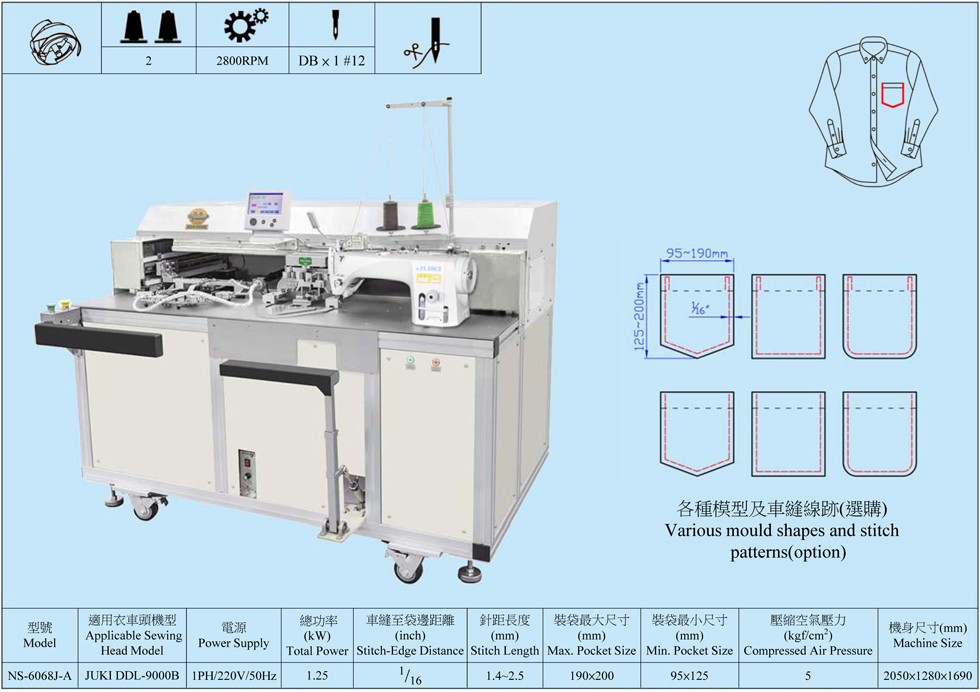 5. 車縫工序自動化,適合非熟練工人操作,每小時可完成300~360個口袋